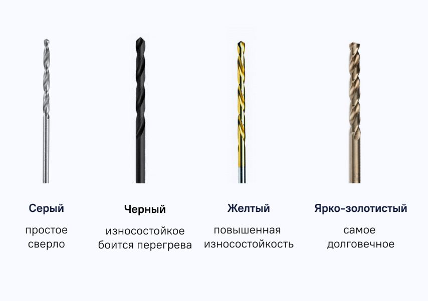 - Серый цвет говорит о том, что перед вами самое обычное простое сверло, без дополнительной обработки.