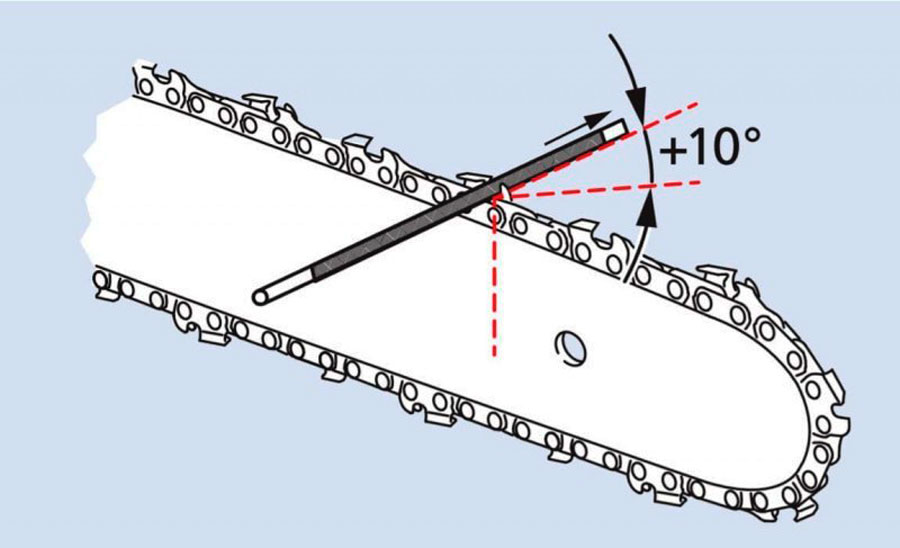 К тому же при выполнении работ оператор должен выполнять счет количества рабочих проходов напильника, что важно для равномерного стачивания зубьев. В противном случае из-за разных размеров зубцов будет ухудшаться качество реза цепи бензопилы