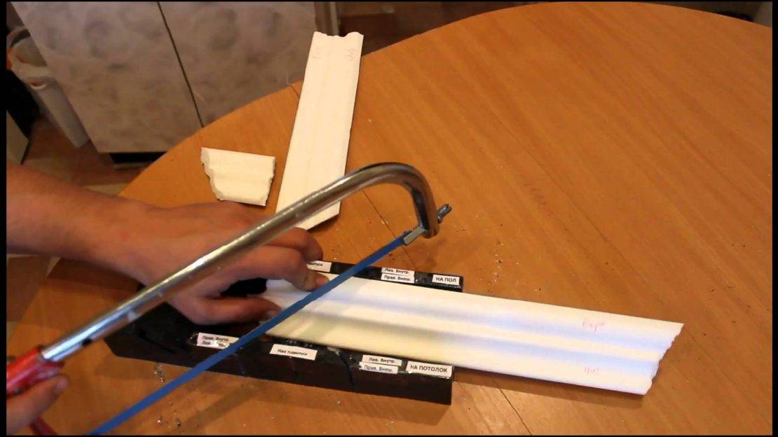Как вырезать потолочный плинтус в углах. Как правильно обрезать потолочный плинтус в углах в домашних условиях без стусла +Видео и Фото