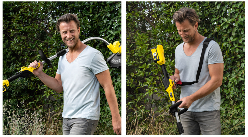 Удобный плечевой ремень на аккумуляторном триммере Kärcher LTR 36-33 Battery Set равномерно распределит нагрузку на руки и плечи, а мягкая вторая рукоятка пригодится при продолжительной работе. При этом вес самого триммера составляет всего 2,7 кг.