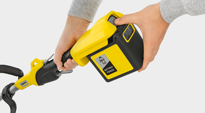 Оснащение. Kärcher проявляет заботу о клиентах и поставляет триммеры с аккумулятором Battery Power 36 В / 2,5 Ач и быстрозарядным устройством Battery Power 36 В, которое подходит ко всей аналогичной линейке.