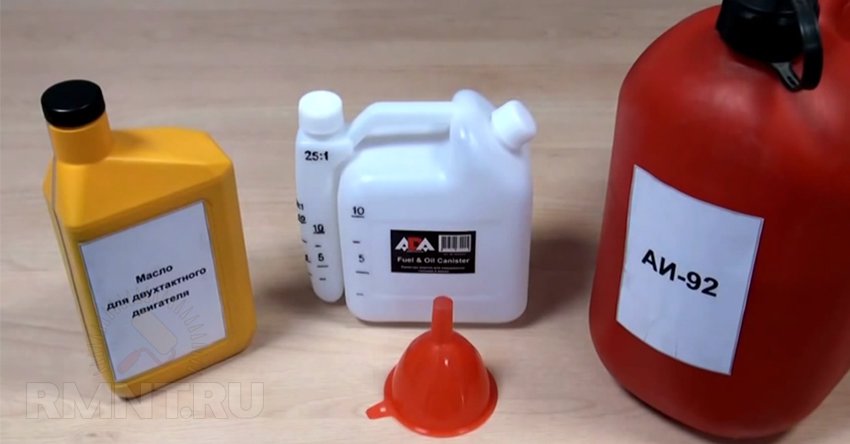 Важный нюанс – система смазки двигателя. Как уже говорилось, рабочая смесь всасывается из картера, поэтому масло добавляют прямо в бензин в пропорции от 1:50 до 1:20. Этот «коктейль» в конечном счете и сгорает, поэтому выхлоп у бензопил специфический.