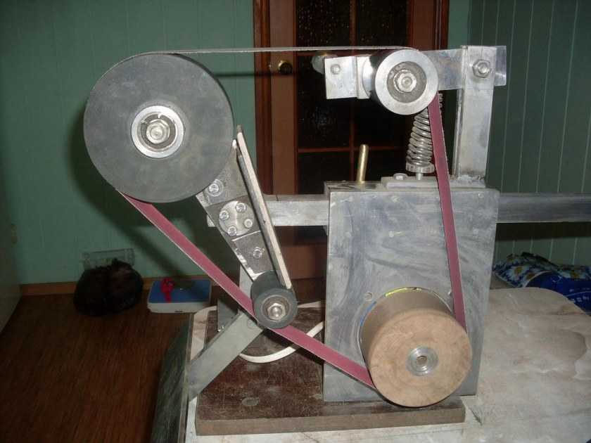 Любой ленточный шлифовальный станок состоит из надежного каркаса и вспомогательных деталей. Основная задача при изготовлении станка расположить ролики в одной плоскости, иначе лента постоянно будет съезжать в сторону.