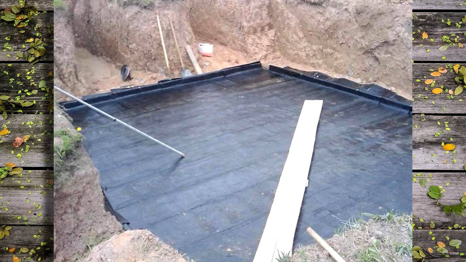 - Выравниваем дно и настилаем гидроизоляционный материал.
