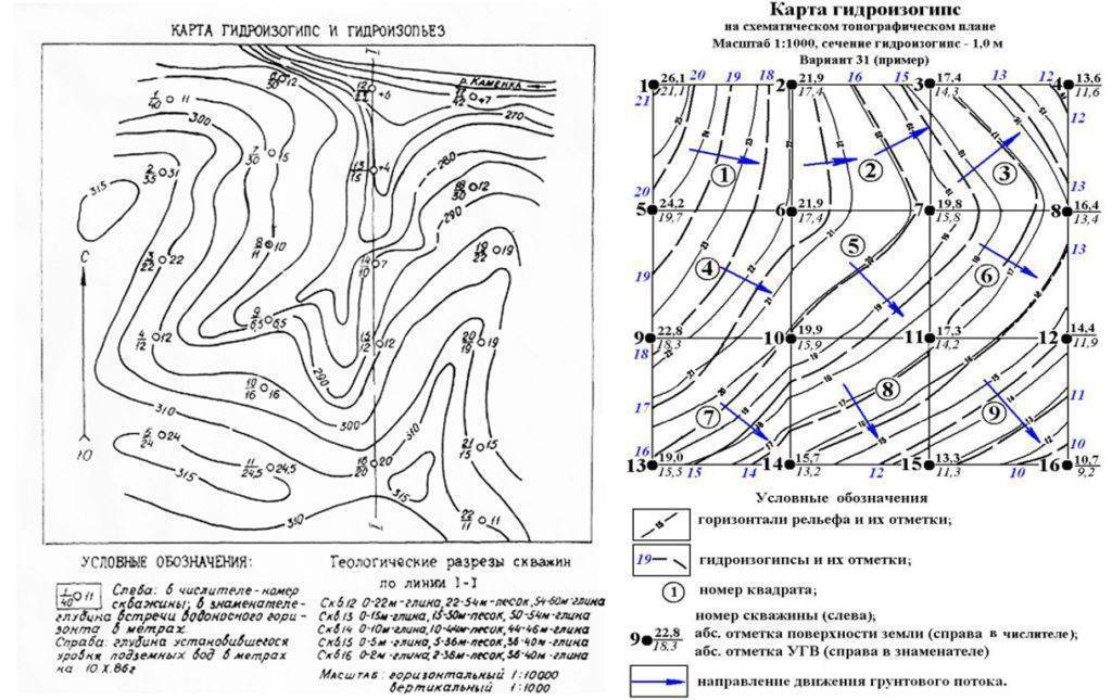 Хороший вариант – обратиться к карте гидроизогипс и гидроизопьез. Она есть в каждом муниципальном районе и составляется при проектировании жилого массива, дачных участков, деревни. Можно обратиться в отдел архитектуры, в сельсовет и запросить схему подземных вод.