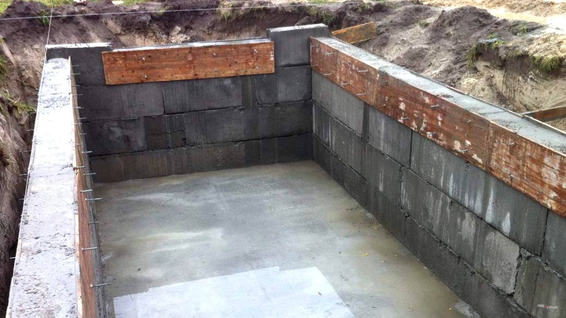 - делается опалубка и из бетона отливаются стены толщиной 10 см и пол;