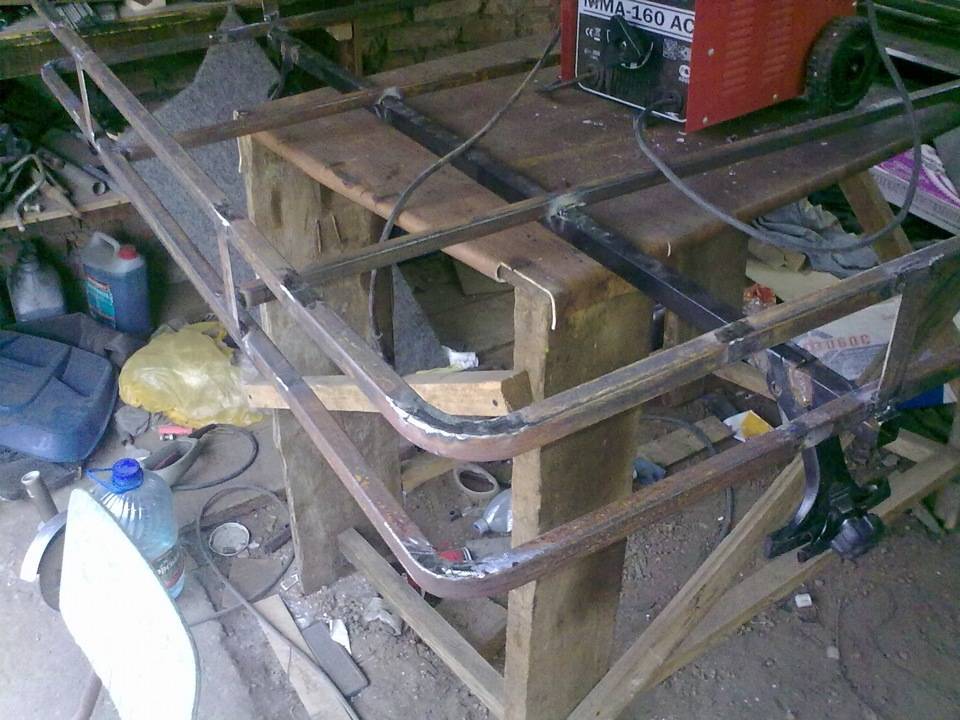 - Основание для станка можно сварить из подходящих стальных деталей. Затем к основанию необходимо прикрутить прижимной вал.