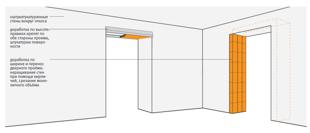 Схема уменьшения размеров дверного проема.
