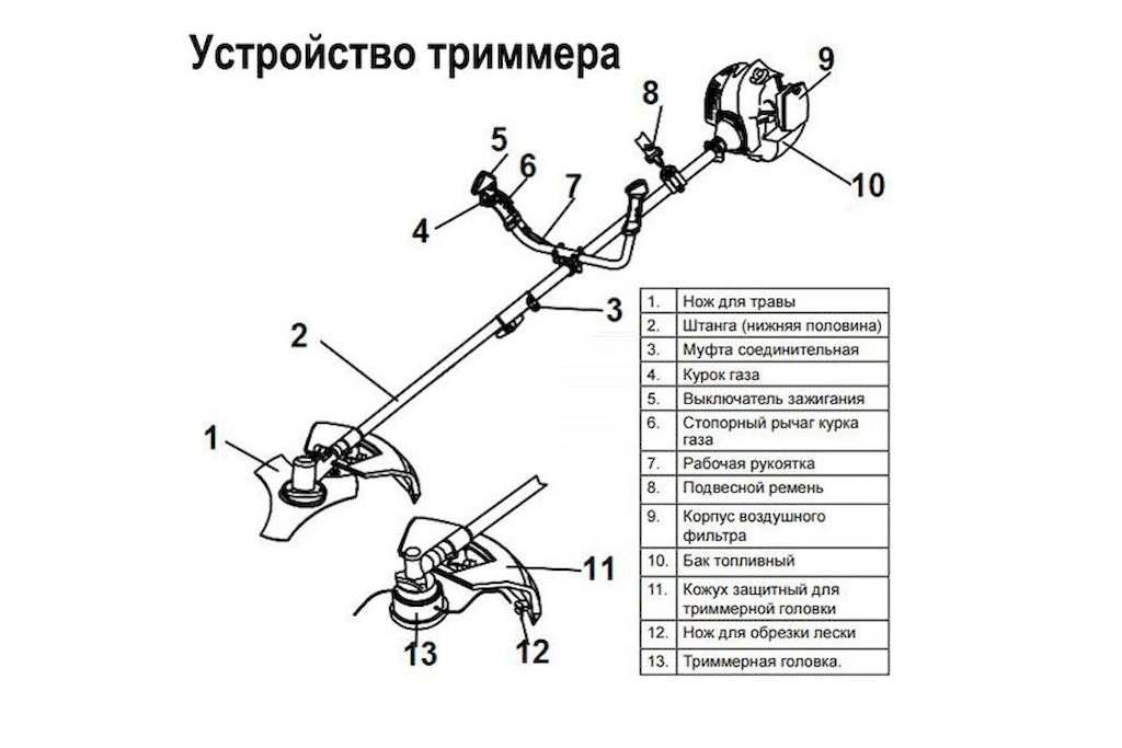 - Проблемы с режущей частью инструмента решаются при помощи своевременной заточки ножей и правильного подбора лески по толщине и длине.
