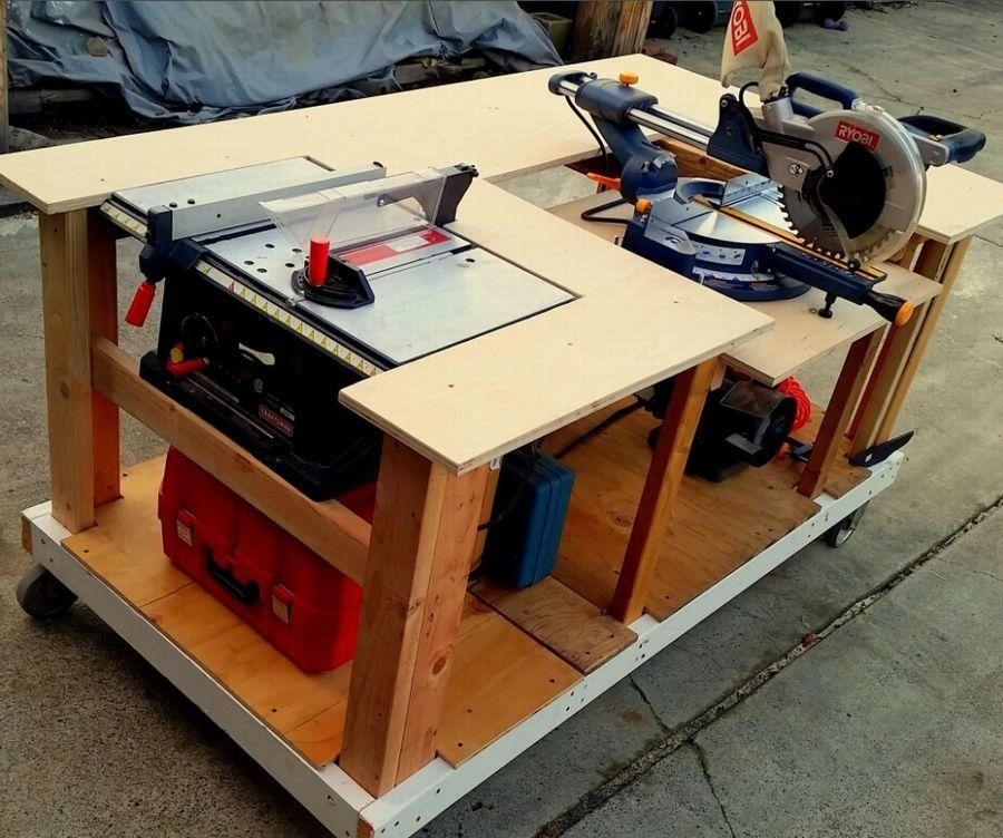 Самое главное, что Вы можете снабдить колесиками, такие конструкции и точно так же легко их перемещать по помещению. Это нужно в основном, что бы было удобно, убирать под столом опил и стружку. Так же на самом столе Вы можете расположить дополнительное оборудование, которое необходимо Вам.