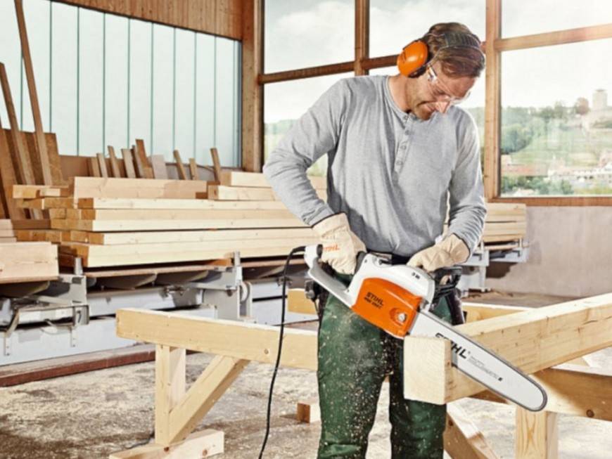 Ключевое же преимущество таких пил — это малый вес, минимальный шум при работе и экономия (электричество обойдётся дешевле бензина). А ещё их не нужно запускать со стартера, достаточно лишь нажать кнопку. Вхолостую им работать тоже не приходится. Их рекомендуется покупать для редкого использования только в бытовых условиях.