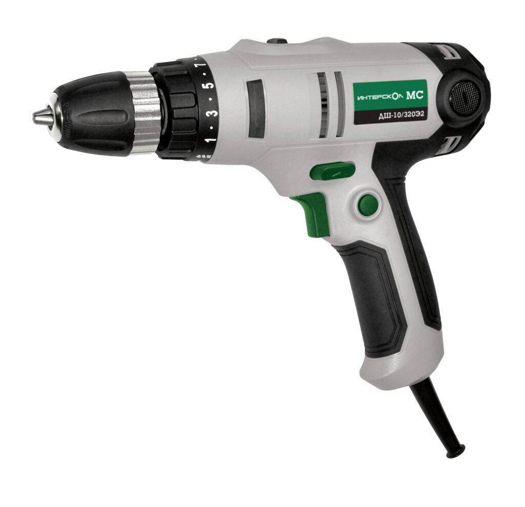 - Интерскол. Отдельно можно отметить модель ДШ-10/260Э2. Имеет малый вес, из-за чего облегчается эксплуатация. Не выскальзывает из руки благодаря наличию специальных накладок. Инструмент оснащён быстрозажимным патроном, поэтому заменить биту или сверло не составит труда. Саморезы легко наживляются путём нажатия на пусковую кнопку. Есть возможность регулировать крутящий момент, функция реверса. Совершать мелкие операции будет в удовольствие. Нет стопора, но для такого варианта, это небольшой недостаток.