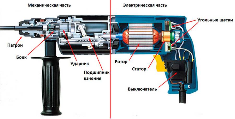 - предохранительная муфта, снижающая риск возникновения травм при заклинивании бура или коронки в процессе работы инструмента,