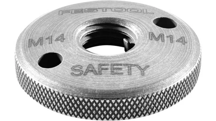 Болгарка весьма травмоопасный электроинструмент. Поэтому к замене деталей и комплектующих следует подходить с особой тщательностью. Если была потеряна прижимная гайка, не стоит ее заменять на обычную шестигранную М14. Прижимная поверхность такого крепежного изделия недостаточна для надежного закрепления инструмента. Лучше обратиться в сервисный центр или купить штатную прижимную гайку в специализированном магазине.