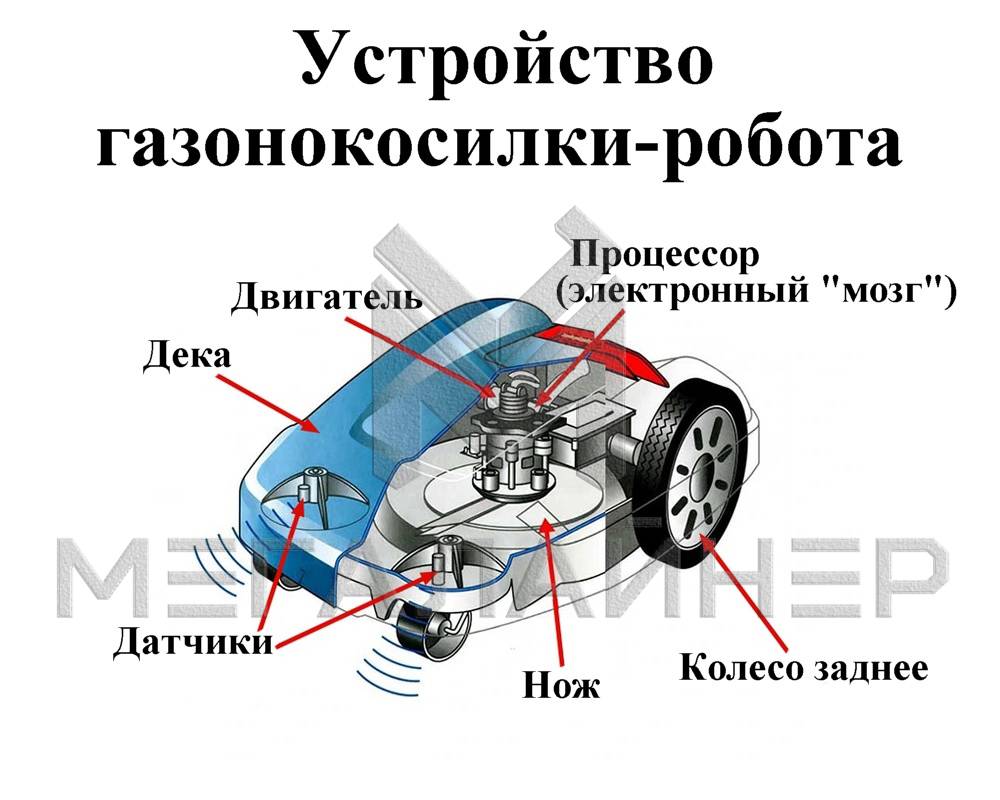 - косилка-робот (разумеется, самоходная) программируется один раз, далее все происходит без участия человека.