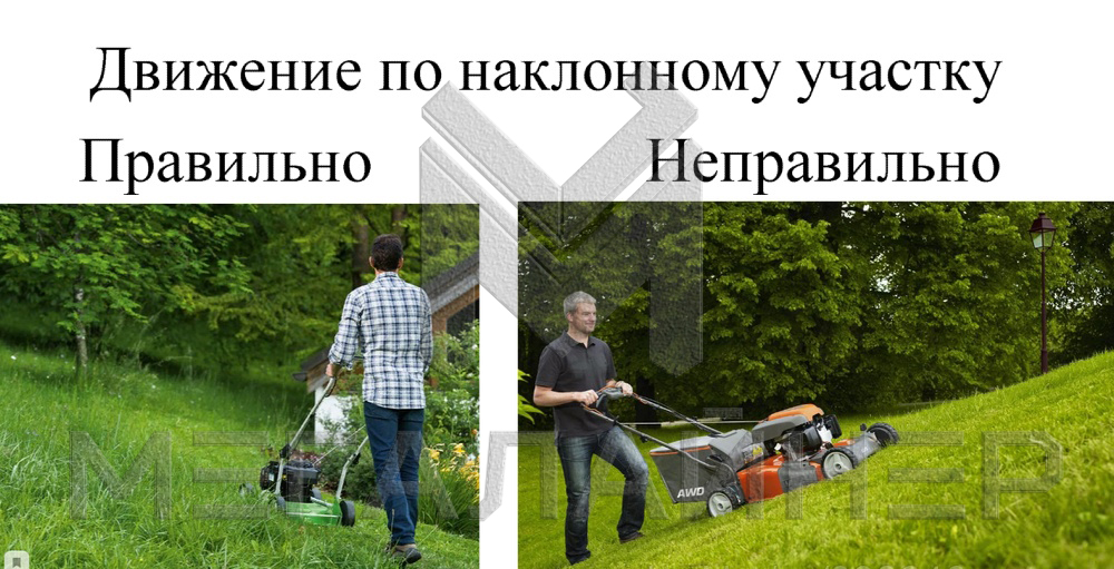 Проходимость заднеприводных косилок выше, но они менее поворотливы. С ними хорошо работать на склонах. Только следует правильно направлять косилку.