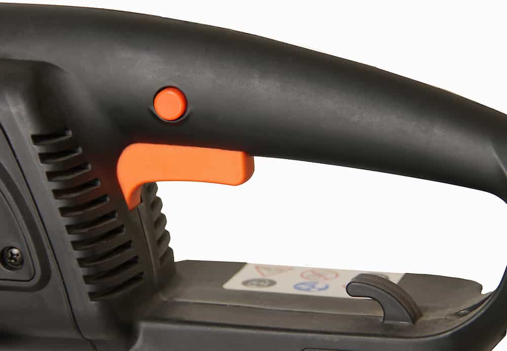 - гарантия повышенной безопасности оператора, для чего модель оснащена инерционным дополнительным тормозом, срабатывающим через доли секунды даже при легком касании на щиток-предохранитель и при отскоке прибора в сторону;