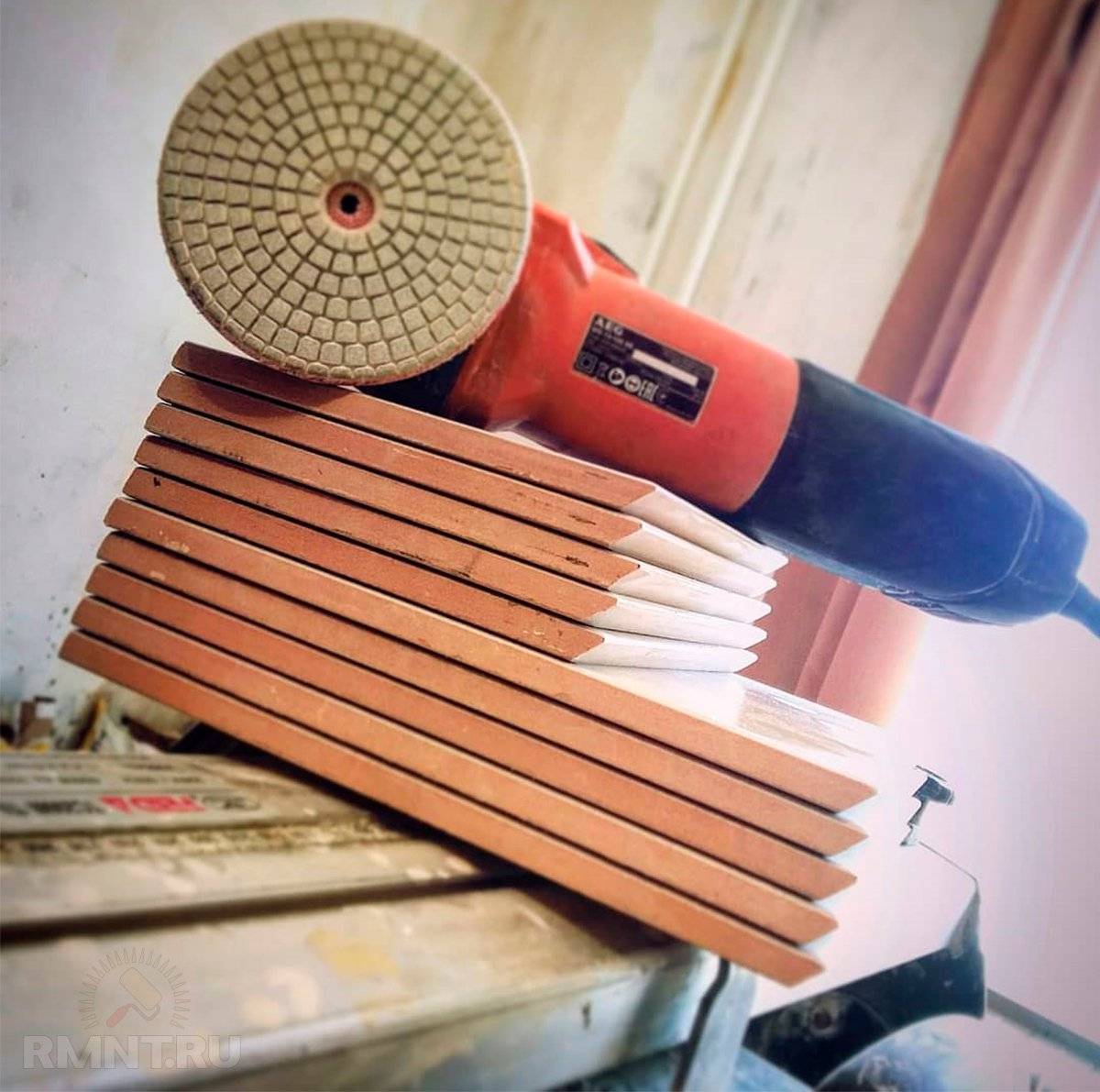 - Удалить остатки скотча и обработать край плитки наждачной бумагой до получения желаемой чистоты поверхности.
