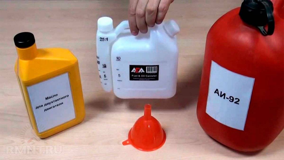 Для получение данной двухкомпонентной жидкости, моторное масло необходимо смешать с бензином в установленных пропорциях. Для каждого двухтактного аппарата эти данные приведены в инструкции. К примеру, минеральные смазки и бензин мешают в пропорциях 1 к 35, а синтетические – в соотношении 1 к 50.