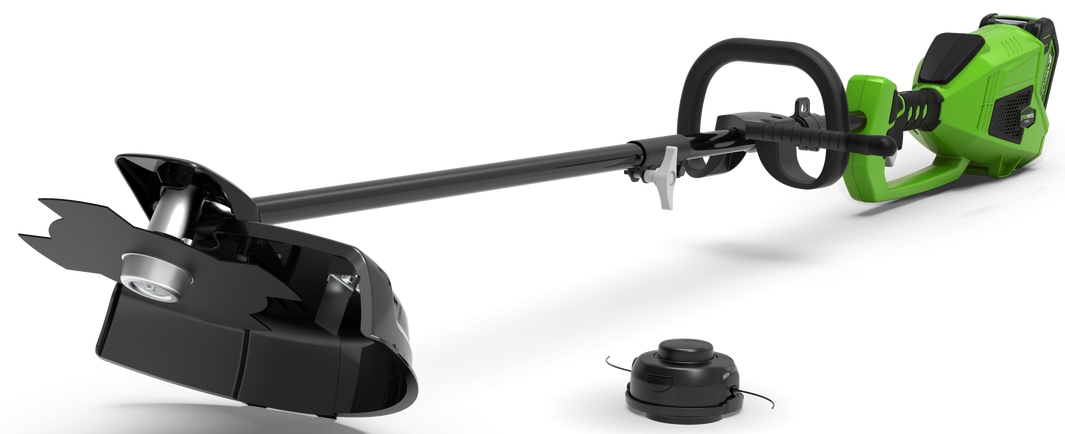 Легкая модель — массой 2,45 КГ. Независимость обеспечена Li-Ion аккумулятором, емкостью 2500 мАч. Эргономичный дизайн за счет телескопической штанги, плавающей рукояти. При помощи настроек можно выбрать идеальное положение рабочих органов под рост косаря.