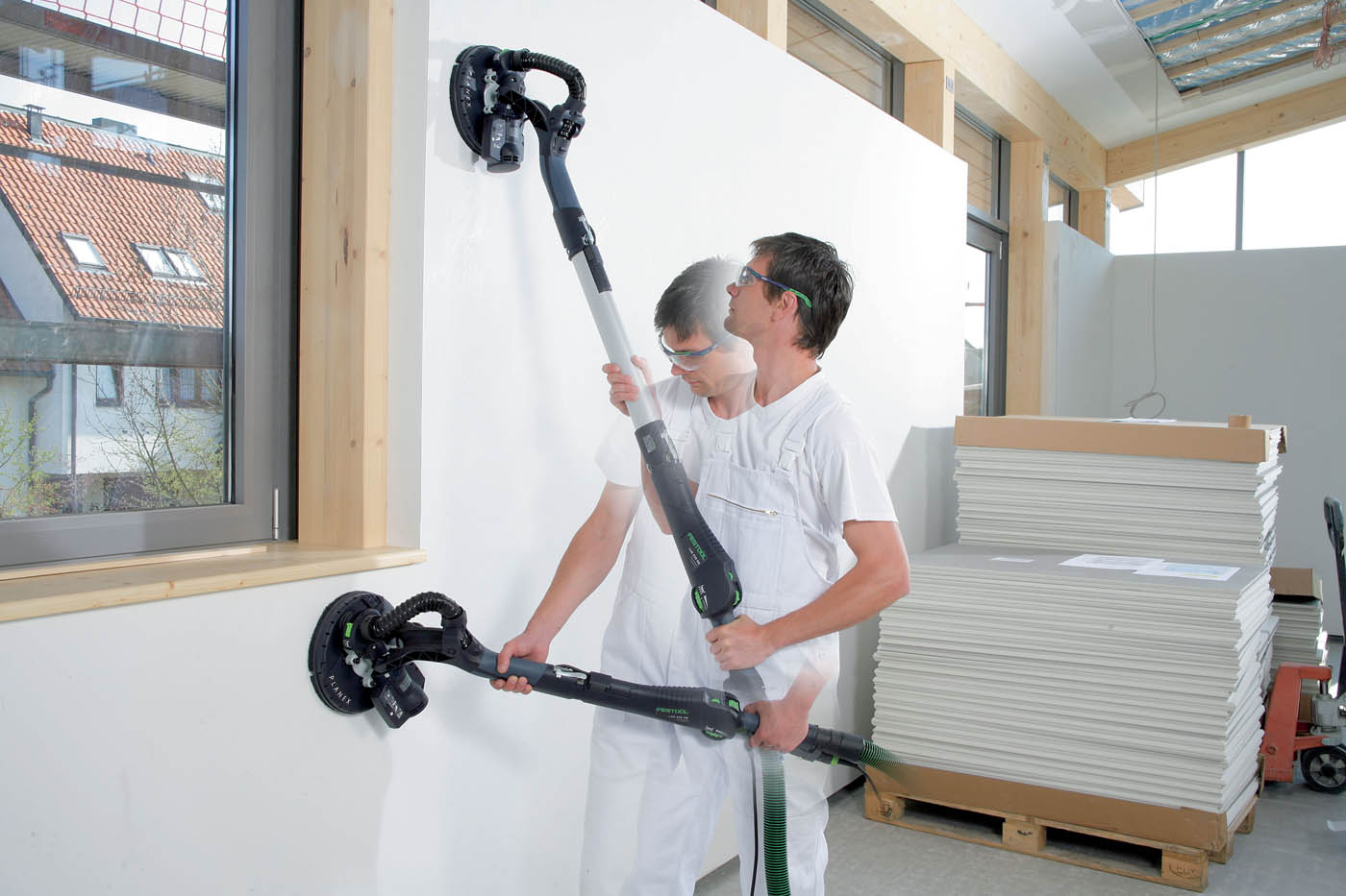 Шлифмашина Festool Planex, имеющая округлую насадку, отличается производительностью снятия штукатурки и шпаклевки со стен, потолков в час до 18 кг. Для эксцентриковой модели MIRKA DEROS производительность снятия материалов в 1 час составляет 7 кг. Однако при покупке модели можно учитывать вес шлифмашины. Более легкими являются модели марки MIRKA DEROS — до 1-2 кг.