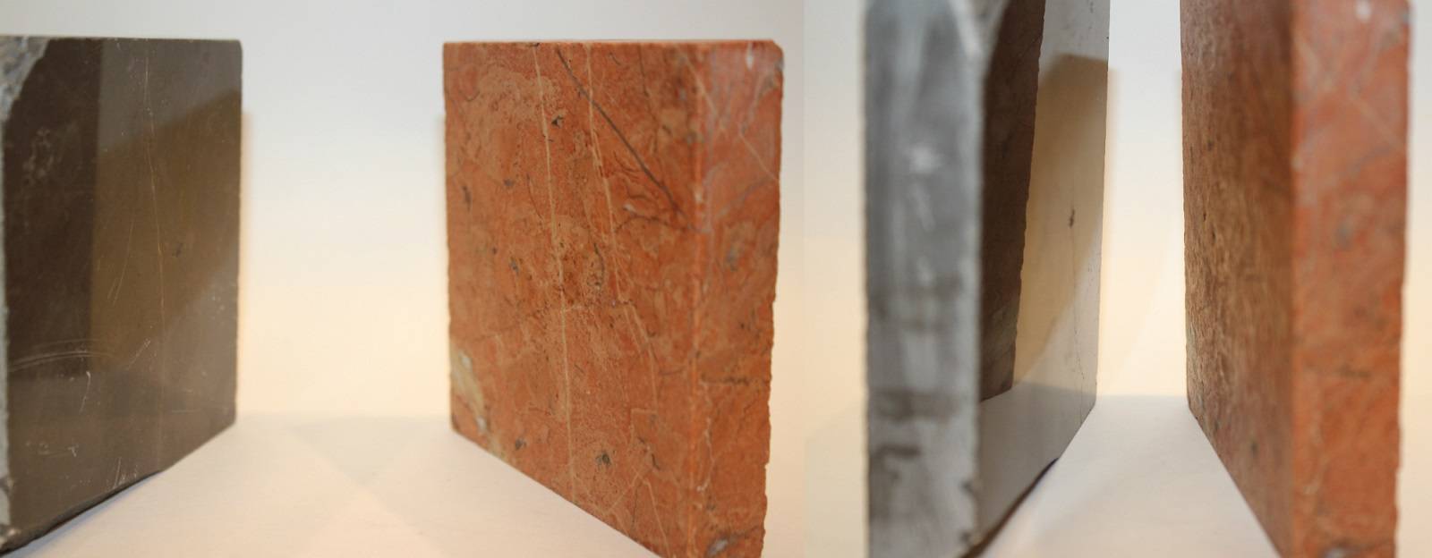 Эти три этапа обработки мрамора и гранита также имеют общее назначение: создание менее гладкой поверхности. Один из популярных случаев, когда возникает такая потребность — уменьшение скользящих свойств поверхности, например на ступенях. Некоторым заказчикам нравится именно рельефный тип поверхности, а не гладкий. Состаривание — обработка мрамора царапающими движениями абразивными щётками. Используется только на мраморе и на мягких видах гранита. На твёрдых же гранитах для этих целей применяется термообработка (термообработкой нельзя воздействовать на мрамор, так как он лопнет).