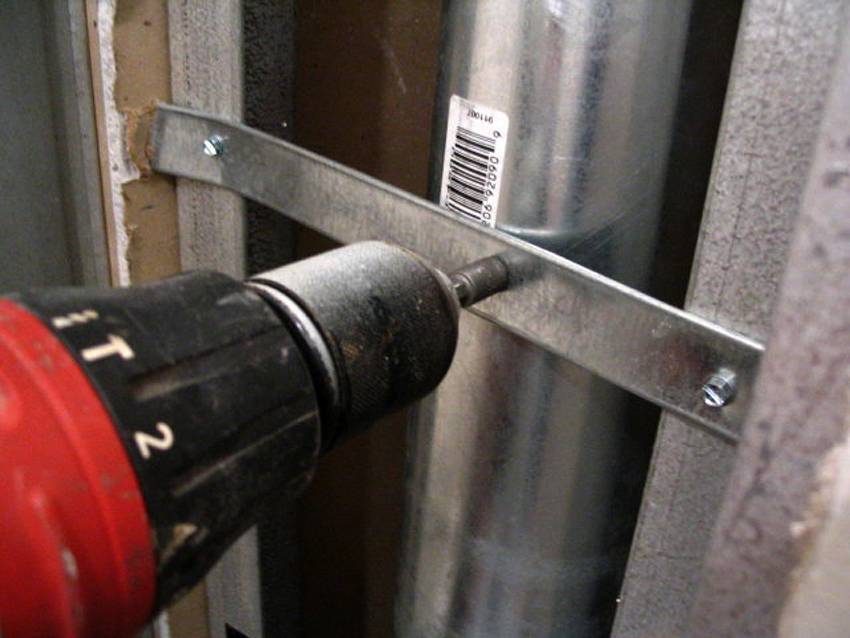 Размещение и закрепление воздухоотвода. От размещения короба напрямую зависит способ его крепления. Если изделие монтируется в шкаф, то его следует прикрепить к задней стенке с помощью хомутов. Прокладываемый над шкафами короб можно закрепить к ним же посредством держателей и саморезов. Фиксацию к стене или потолку стоит делать с помощью держателей и хомутов и располагать их с интервалом не менее 70 мм.