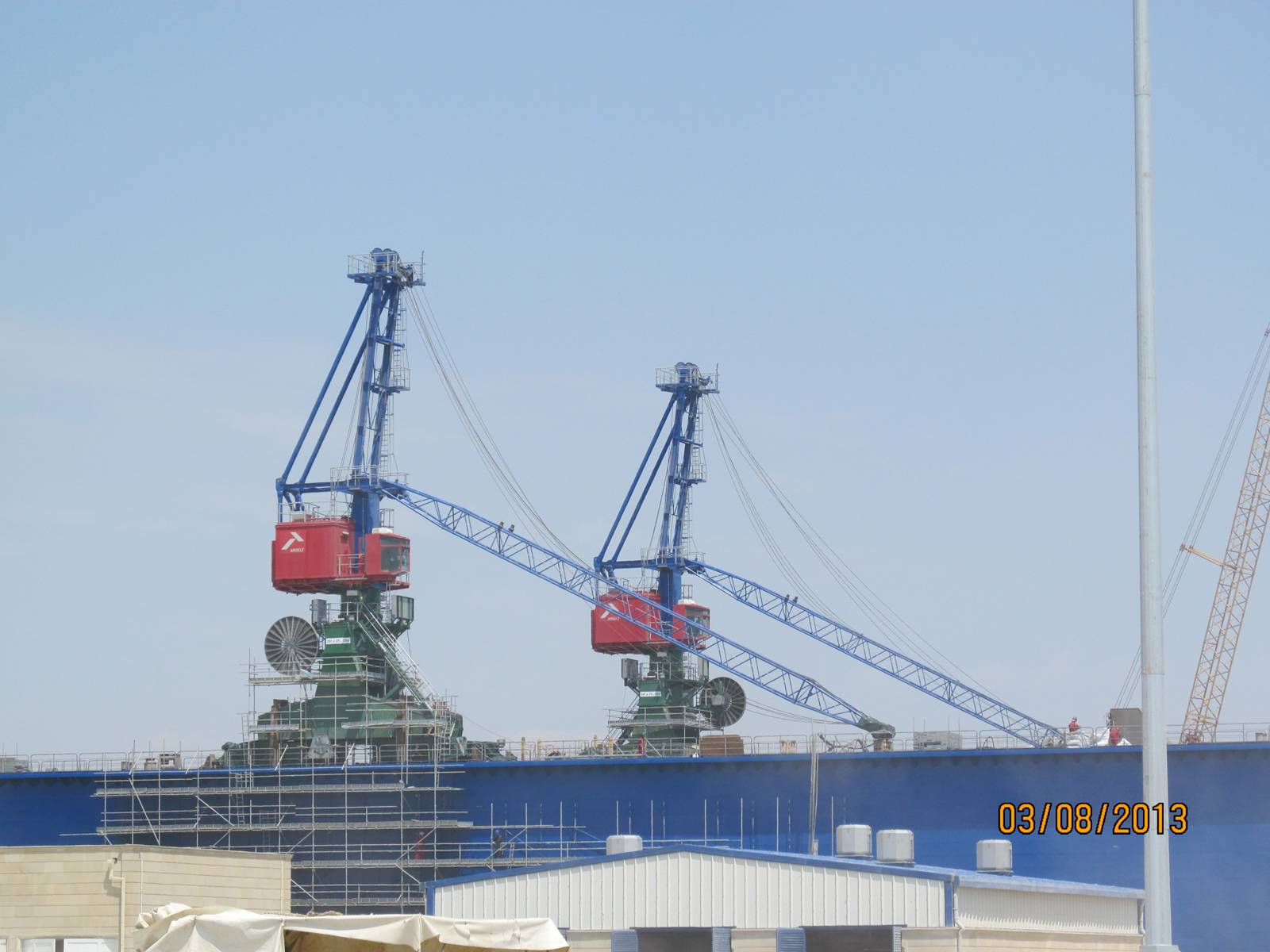 - Монтажные – обычно устанавливаются на судостроительных и судоремонтных верфях, отличаются большой высотой ног. Используются при работе со штучными грузами особой ответственности, могут оснащаться двумя крюками и противоопрокидывающими захватами. У них малая рабочая скорость и переменная, зависящая от вылета, грузоподъемность – от 12,5 до 160 т.