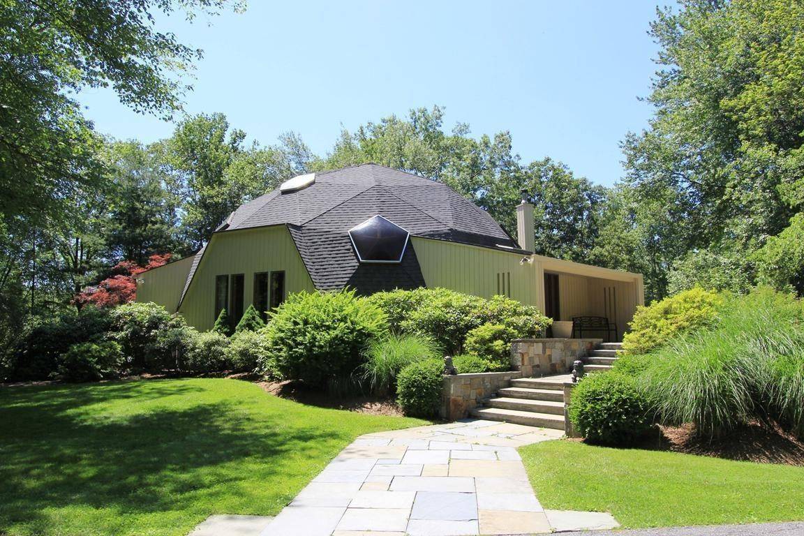 Двухуровневый дом на основе стратодезического купола с гонтовой облицовкой