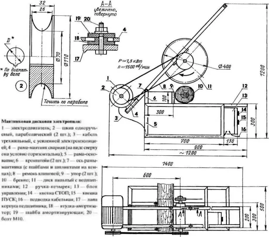 Диск будет крутиться за счет двигателя, который необходимо правильно подключить – к режущему элементу посредством передачи, к сети посредством проводки.