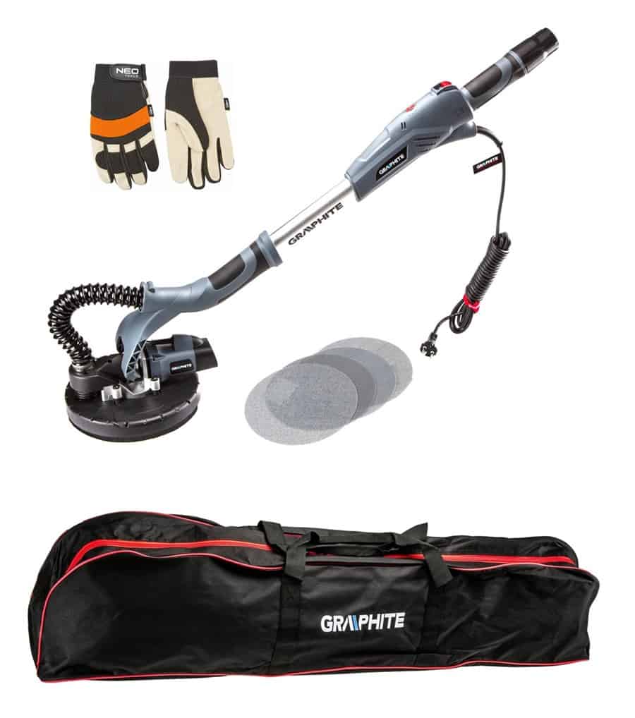 Недорогая и доступная шлифовальная машина, которая отлично подойдет для сухого шлифования стен и потолков. Подвижная головка инструмента гарантирует максимальное сцепление с поверхностью, которую предстоит обрабатывать, так что, несмотря на скромную мощность – всего 600 Вт, девайс достаточно производительный. К устройству можно подключить пылесос, что сэкономит массу времени на уборку после завершения работ. Шлифовальная тарелка защищена щеточным сегментом, так что в безопасности находится как она сама, так и оператор.
