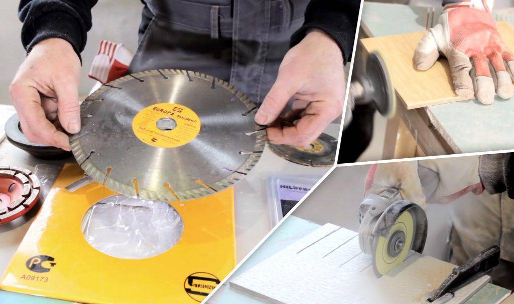 Держат инструмент при резке от себя по вращению круга. Нельзя давить на отрезной диск. Под каждый вид материала нужно использовать специальные диски, так как по металлу используют абразивные полотна, а по кафелю алмазные сухорезы.