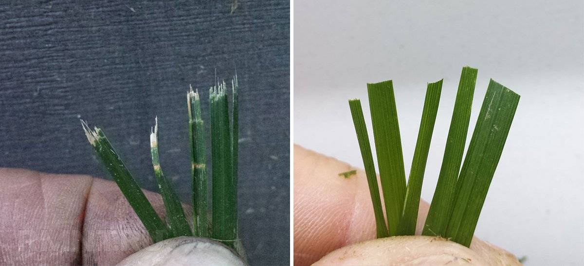 Срезать излишки травы с газона можно даже если у ножа косилки кромки очевидно затуплены. Однако при этом побеги будут расслаиваться в продольном направлении, превращаясь в бахрому. Через несколько дней после кошения трава станет жухлой и будет болеть ещё несколько недель. Срез должен быть ровным и аккуратным, тогда он затянется буквально за несколько часов и газон всегда будет сочно-зелёным. Для этого требуется, чтобы нож был заточен практически идеально.