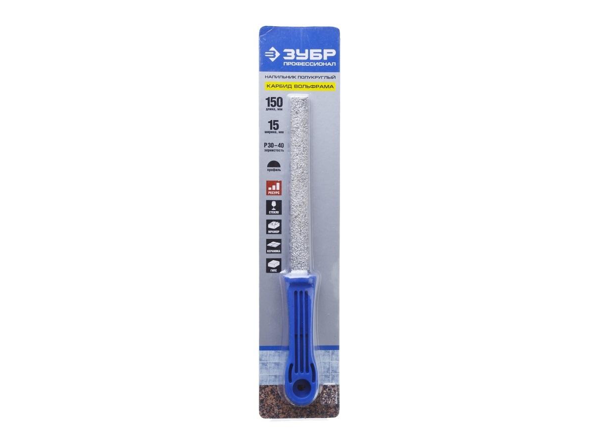 При изготовлении используется инструментальная спецсталь, рабочая плоскость создана с помощью напыления высокопрочного сплава на основе карбида и вольфрама. Зерно наносится автоматически, это увеличивает ресурс. Средняя зернистость даёт возможность быстро опилить чугун, алюминиевый сплав, пластик или дерево. Длина рабочей части 150 мм – это позволяет использовать рашпиль при манипуляциях в условиях дефицита свободного пространства.