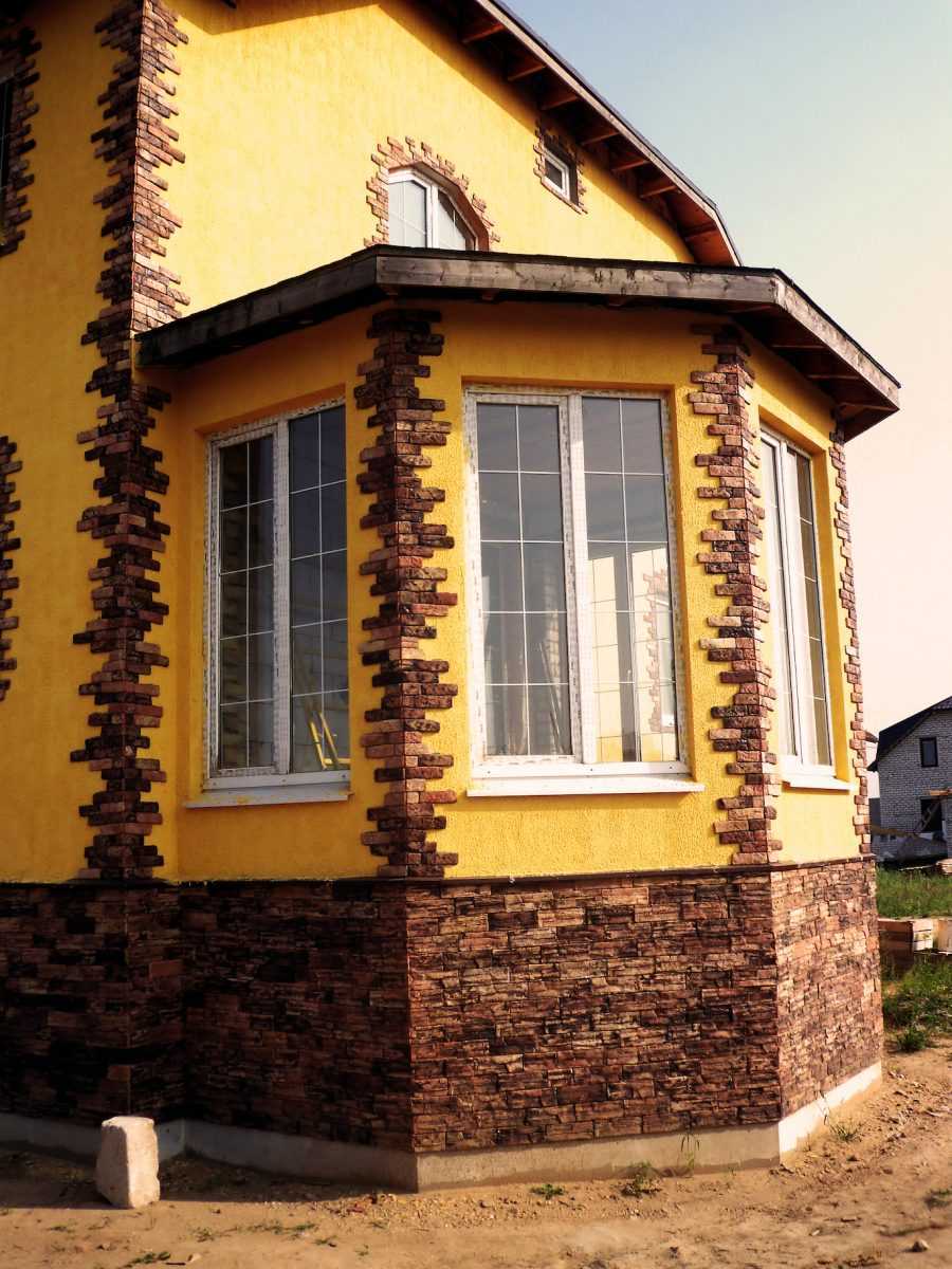 Не менее прочный и долговечный материал. Не подвергается старению, не боится негативного природного влияния, выглядит богато и благородно. Есть два недостатка – большая цена и вес, благодаря чему декорирование домов снаружи декоративным камнем усложняется.