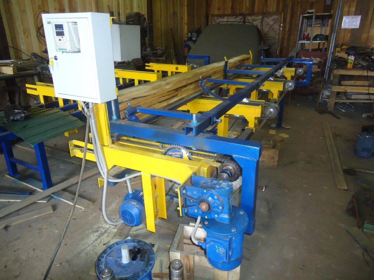 НАЗНАЧЕНИЕ — переработка необрезной доски (обрезание кромки) и переработка горбыля (обрезание кромки и снятие шапки горбыля). Размеры (сечение) заготовки на входе — ширина-300мм, высота-100мм Длина распиливаемого лесосыртя на входе — БЕЗ ограничения (лучше до 3000 мм) Мощность элекродвигателя — 7,5 кВт (11,0 кВт опция) 3000 об/мин Род тока питающей электросети — переменный, 380 В, 50 Гц Скорость подачи сырья — постоянная 6-18 м/мин (регулируемая — ОПЦИЯ) Общая мощность сети электродвигателей — 8,6-15,0 кВт (19,6 кВт) Диаметр пил — от 300 мм до 500 мм (для продольного пиления) Количество пил — 2 (4) шт. по 500 мм с ТСН. Габариты — Длина*Ширина*Высота — не более 1100 * 1000 * 1200 мм Вес — не более 300 к