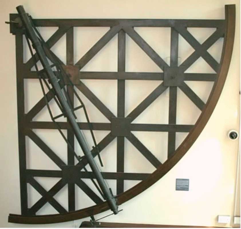 В числе прототипов современных угломерных инструментов – квадрант. Его неподвижную конструкцию сооружали для астрономических исследований на стенах обсерваторий, как правило, в одной плоскости с меридианом. В средние века таким образом измеряли высоту планет над горизонтом при помощи градуированной дуги.