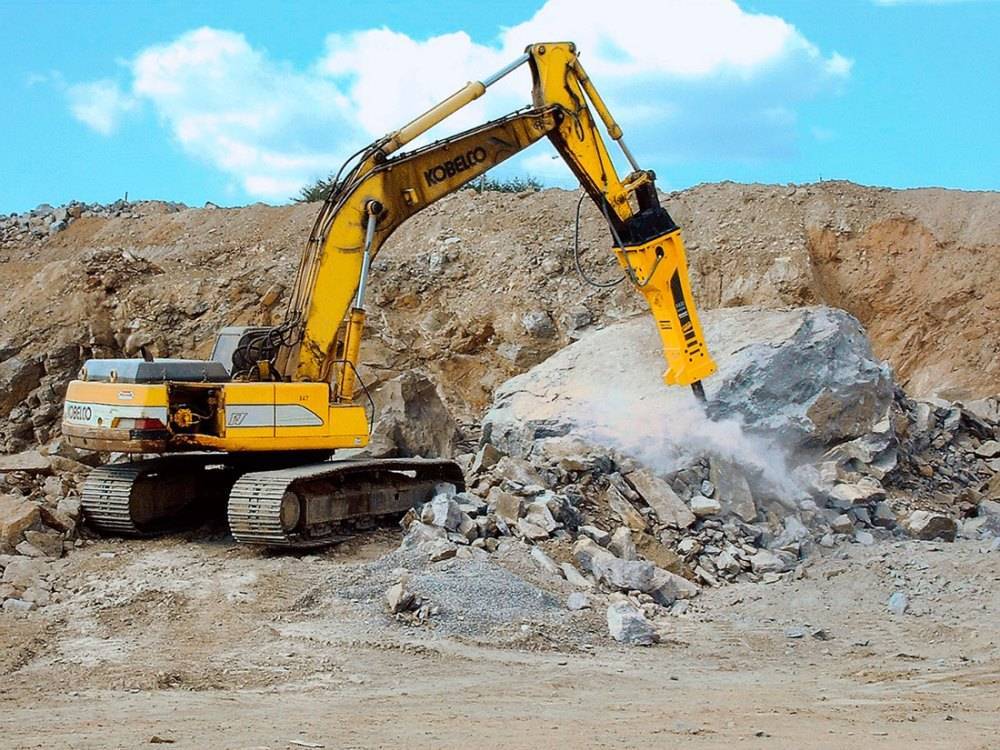 - Разрушение ударным методом используется в стационарных дробилках, а также в случае применения гидравлических и пневмомолотов. Метод имеет низкую производительность при повышенной опасности. Кроме того, работа гидромолота сопровождается высоким уровнем вибрации, вредящей персоналу и значительно увеличивающей износ техники.