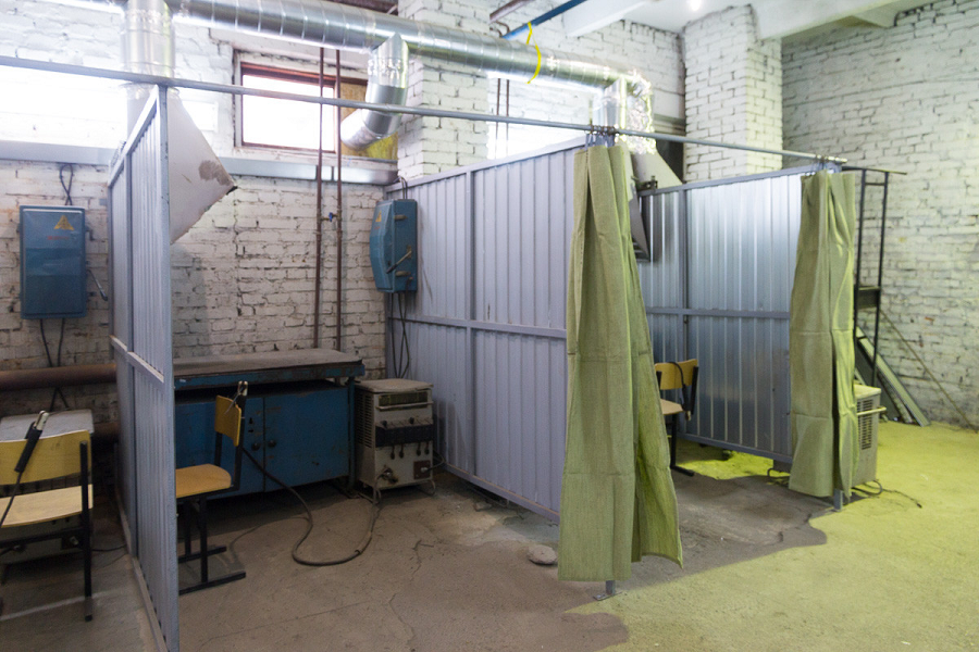 Сварочный кабинет можно обустроить в гараже, на производственной площадке, станции технического осмотра. При этом используют следующую схему выполнения работ: