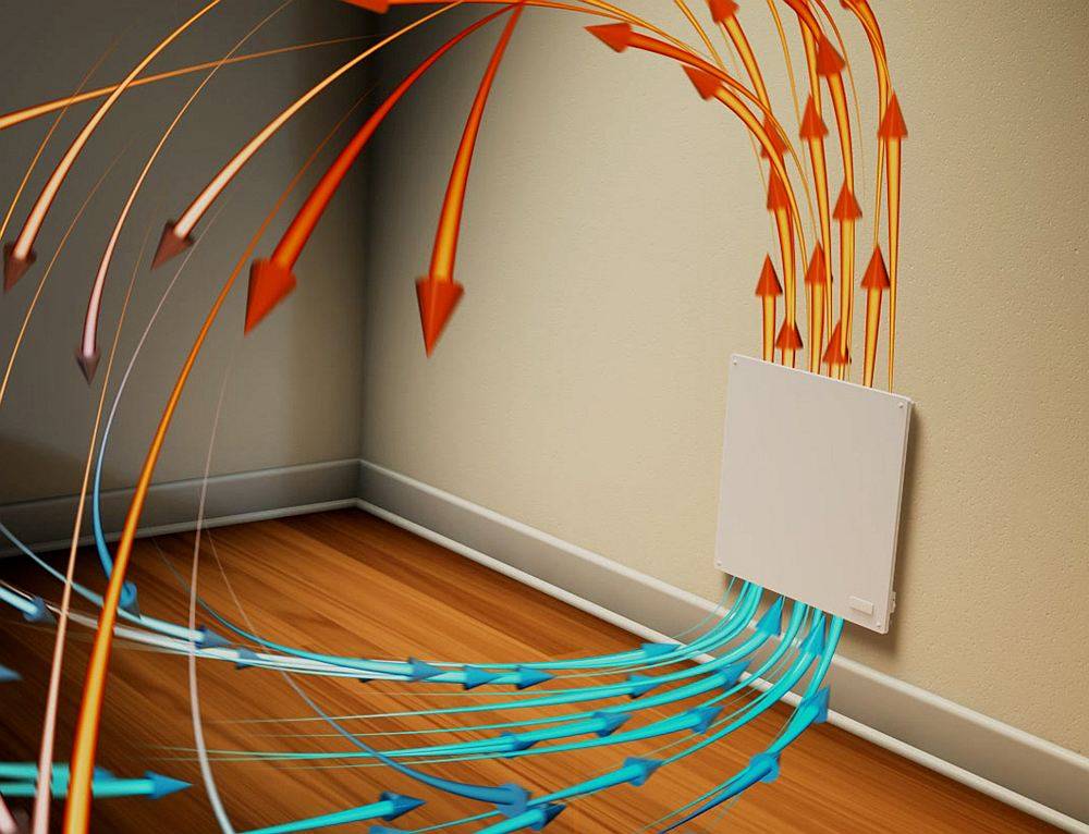 Основной элемент — конвектор. Обогрев конвекторами представляет собой аналог традиционных «батарей», монтаж которых осуществляется под окнами комнаты. На них подается напряжение, которое нагревает воздух. Теплые потоки уходят вверх, а холодные притягиваются снизу. Как итог — хороший цикл и микроклимат.