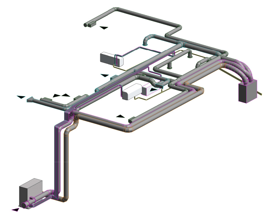 К каждому радиатору от входного и обратного коллектора прокладывается две трубы.