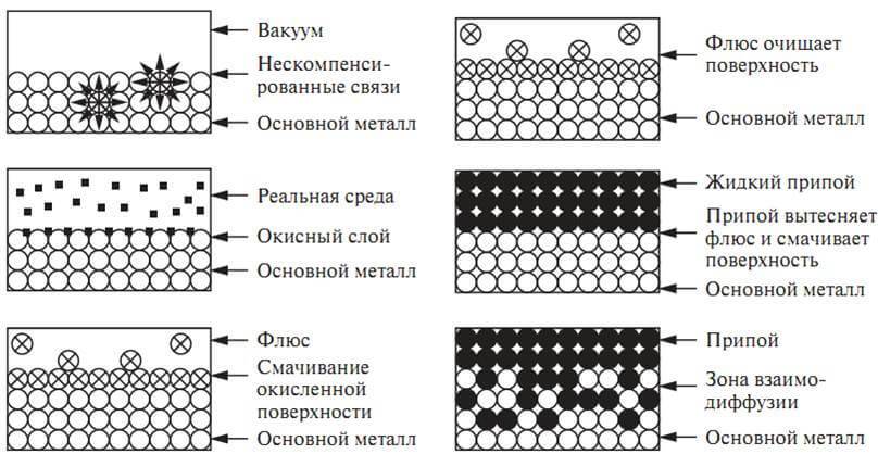необходимо иметь специальные активные флюсы, состоящие из концентрированной соляной кислоты и раствора цинкоаммониевого хлорида, а также флюсы на основе хлористого цинка и аммония с добавкой хлористого олова. Оловянно-свинцовые припои в сочетании с флюсами имеют хорошую текучесть и обеспечивают высокопрочные соединения.