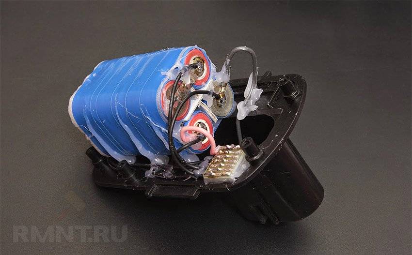 - Напряжение питания рассчитывается по старой Ni-Ca батарее. Обычно блок состоит из 12 аккумуляторов по 1,2 вольта, то есть общий показатель 14,4 В. Литиевые аккумуляторы нельзя разряжать до напряжения ниже 2,74 вольта. Рабочее напряжение 3,0-3,5 В, то есть для замены необходимо соединить последовательно 4 аккумулятора 18650.