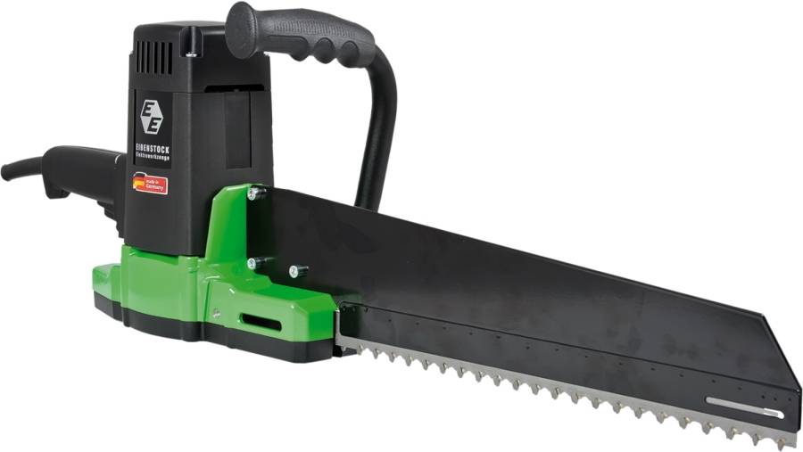 Питание ножовки осуществляется от бытовой электросети, для удобства оператора на инструменте установлен 2,5 м кабель. Конструкция позволяет делать глубину пропила до 150 мм. Ножовка даёт возможность легко справиться с распиловкой древесины. Замена расходного полотна осуществляется без особых усилий.