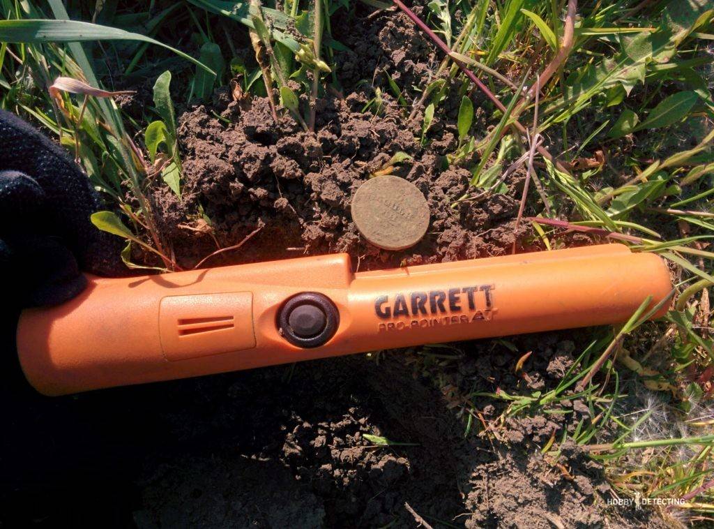 Чувствительность пинпоинтера garrett pro pointer на 1 копейку Николая II составляет 6 см, это прекрасный результат. На нашем YouTube канале есть видео с его тестированием.