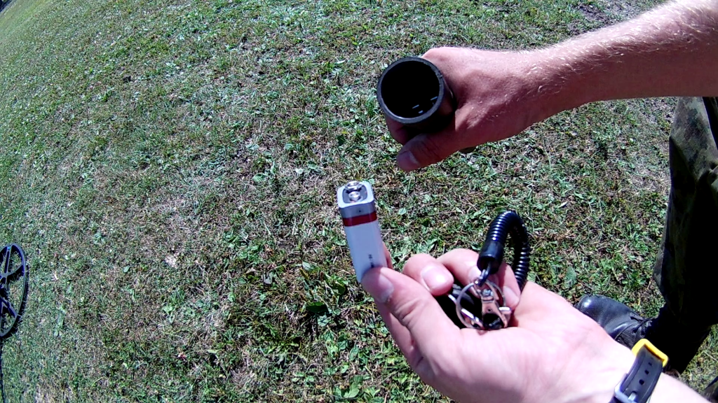 Пожалуй, на этом минусы прибора заканчиваются и начинаются плюсы. Корпус металлоискателя выполнен в полностью водонепроницаемом исполнении. Теперь с пином можно вести поиск на мелководье или мыть в воде после использования. Питание стандартное – батарейка крона, которой хватает надолго. В наличии штатное место для крепления непотеряйки. Также, прибор напомнит о себе, если вы забудете его выключить, а если вы не услышите, то по истечению пяти минут выключится сам.