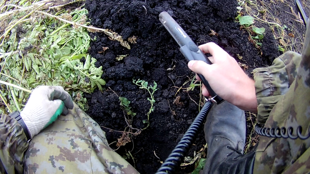 Далее, данный прибор весьма кстати, когда искомая цель настолько мала, что отвал земли придется перебирать довольно долго. А представьте, что земля сырая, почти жижа, в ямке вода и так далее… Руки и одежда в таких условиях за пару минут станут грязными, о нормальном и культурном поиске и времяпрепровождении тут и речи идти не может.