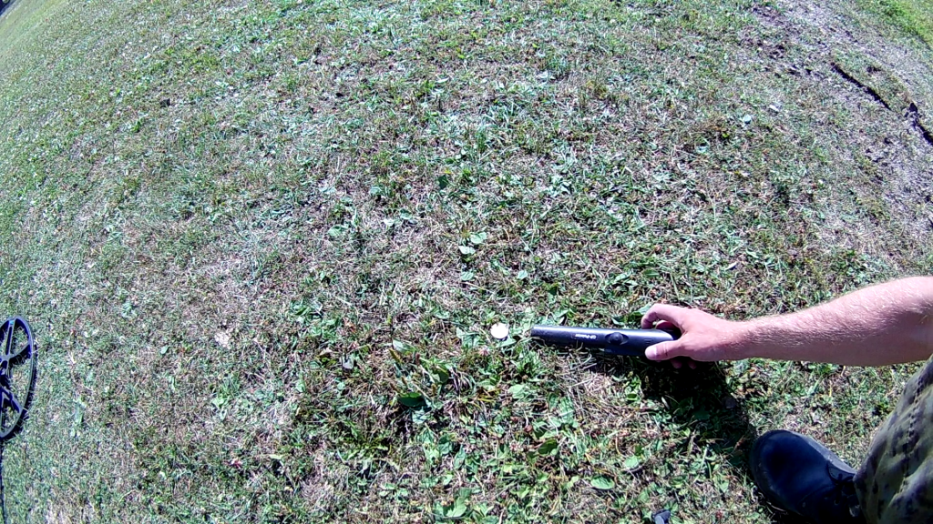 Здесь можно было бы привести не один десяток фото, т.к. SHRXY GP-Pointer — мой постоянный помощник в поисках, и количество выходов без него можно пересчитать по пальцам одной руки. Поэтому добавлю фото одного из первых копов в деревне. Если мелкие металлические предметы в вынутом из ямки грунте мне с моим зрением обнаружить без пина просто нереально, то в случае металлом покрупнее, особенно залегающим глубоко, пинпойнтер помогает локализовать центр цели — и это позволяет меньше копать впустую.