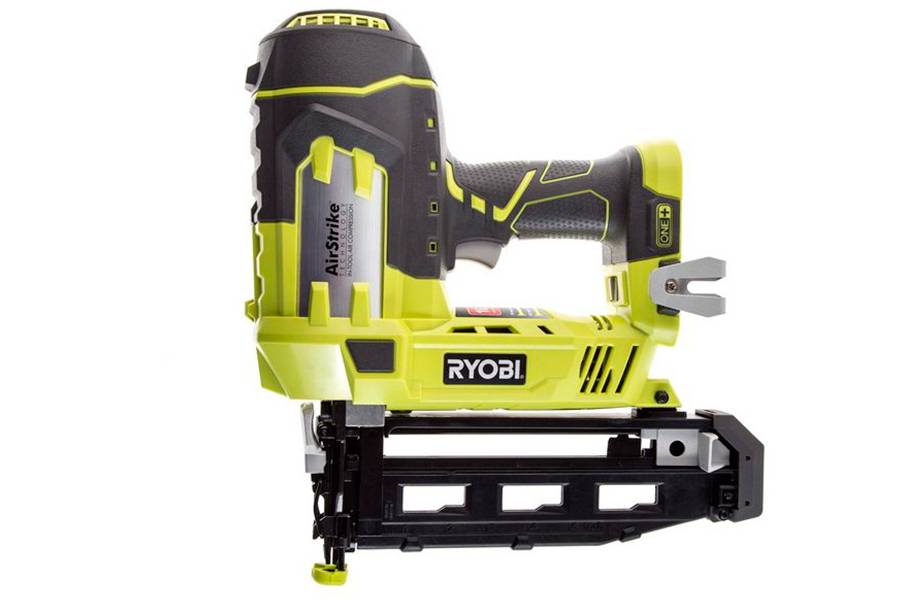 Пистолет для длинных реечных гвоздей функционирует за счет аккумулятора, а энергию удара обеспечивает воспламеняемый сжиженный газ. Нейлер предназначен для работы с древесиной, фанерой и ДВП-плитами, демонстрирует хорошую устойчивость к отрицательным температурам. На одном заряде батареи способен забить до 4000 элементов.