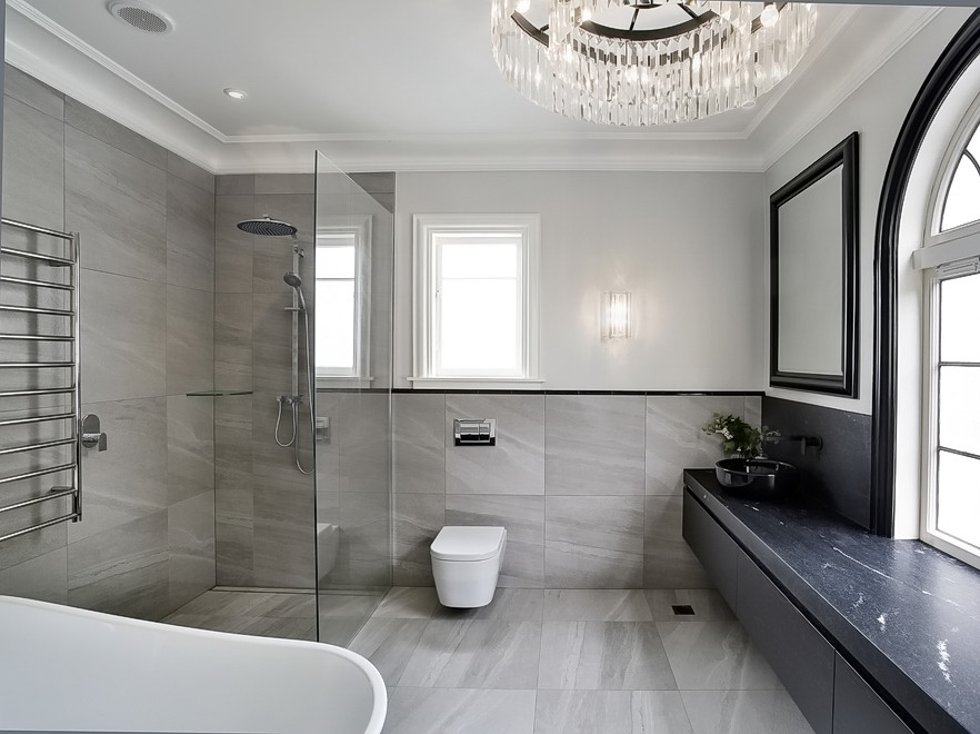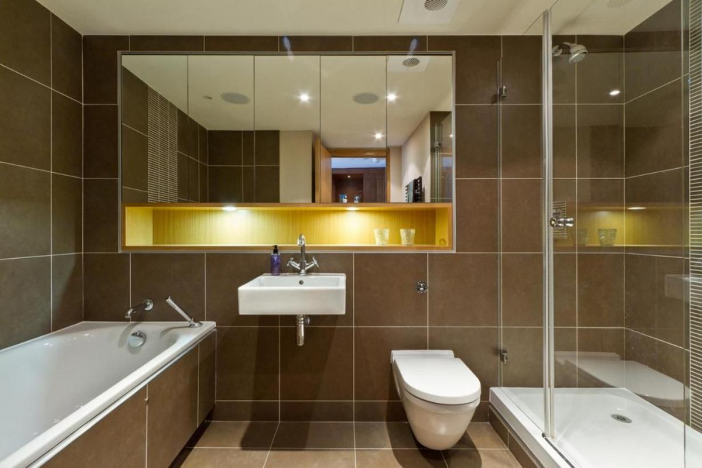 Лучше выбирать крупную или среднюю плитку, т. к. мелкая не всегда органично вписывается в санузлы. Если на стенах покрытие глянцевое, то на полу должно быть матовое, и наоборот.